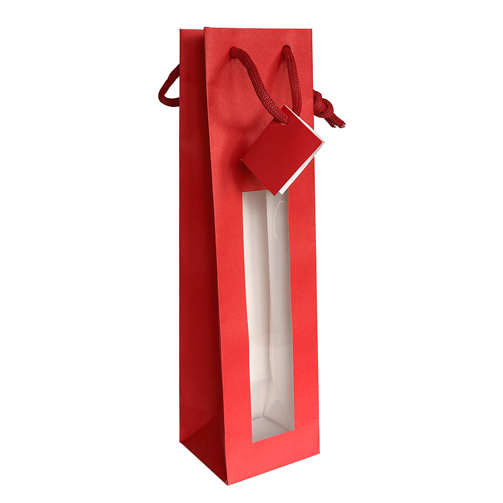 Découvrez notre Sac rouge avec fenêtre avec poignées cordelières en coton de couleur rouge vous permettra de sublimer vos produits d'exception. Ce sac élégant en papier de 175gr avec un fond renforcé sera idéal pour pour vos bouteilles 70 ou 75cl ou tout autre produit de votre choix.